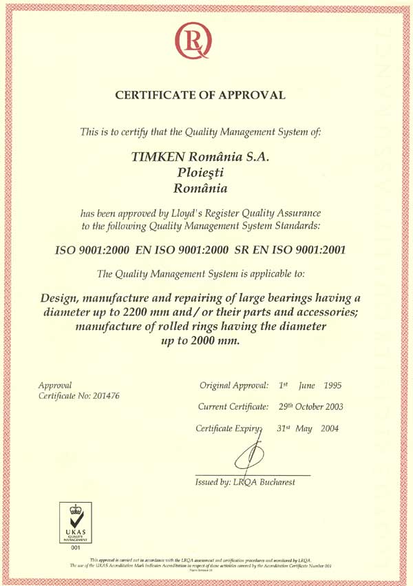 Timken Romania Registration Certificate