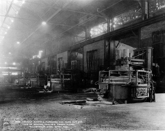 The Harrison plant grows, with the installation of three large electric furnaces and one 100-ton open-hearth furnace to replace the original equipment.