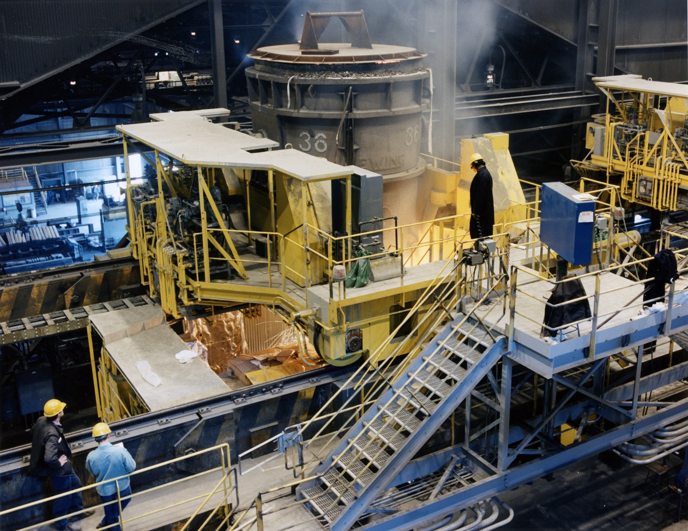 A ladle refiner comes on line in the Harrison steel plant, the next step in the clean steel program.