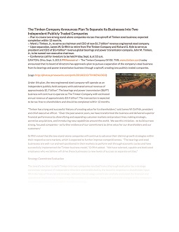 The Timken Company announces its plan to separate its businesses into two independent, publicly traded companies.